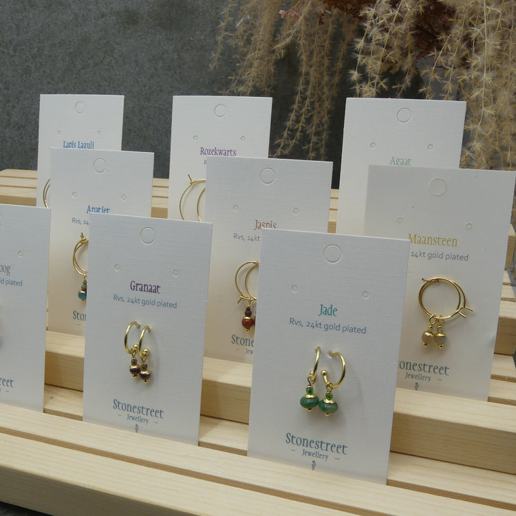 Affordable earrings with natural and gemstones made of stainless steel. This material is known for its strength, colour retention and skin friendliness.